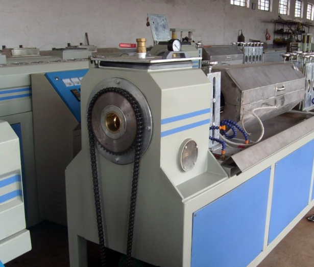 該機(jī)的螺桿采用屏障式結(jié)構(gòu),機(jī)筒擁有的溝槽式結(jié)構(gòu),以便達(dá)到良好的塑化和混煉效果。HDPE(PP、ABS)大口徑管材則采用籃式模具的特殊設(shè)計,降低溶解溫度和主機(jī)壓力,達(dá)到很好的混合效果,從而使產(chǎn)量得到保證。