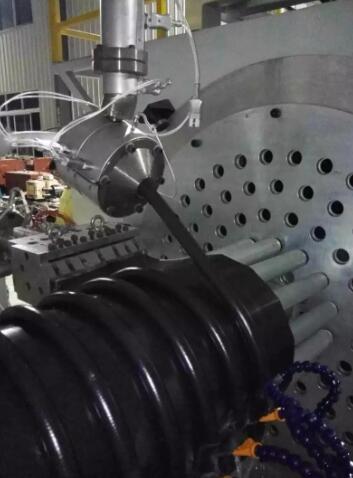 3. 熱態(tài)纏繞成型熔縫質(zhì)量高,從擠塑機(jī)口模擠出的處于熔融狀態(tài)的平料帶和包覆料帶,按預(yù)定的位置均勻的纏繞在加熱的滾筒模具上,保證了結(jié)構(gòu)壁管熔接縫質(zhì)量,管材采用風(fēng)冷卻,材料冷卻均勻。特別是結(jié)構(gòu)設(shè)計(jì)中平料帶的熔接縫被料帶包覆支撐管所覆蓋,提高了制品整體的抗外壓能力。 管材的水平層與加強(qiáng)結(jié)構(gòu)層在熔融狀態(tài)下熔接,熔縫質(zhì)量高,沒(méi)有內(nèi)應(yīng)力,管材的整體強(qiáng)度高。