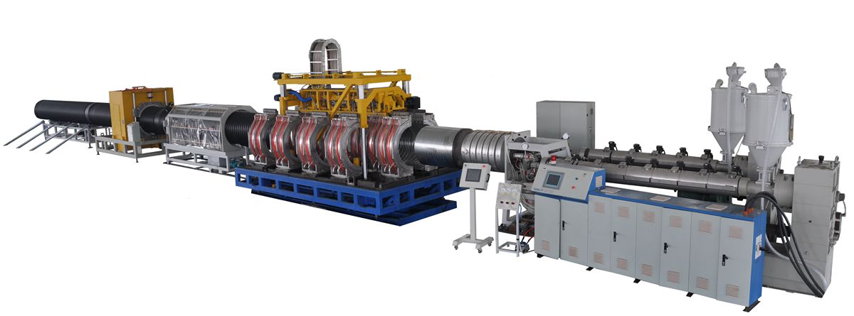 HDPE雙壁波紋管設備是以高密度聚乙烯為主要原料,分別由內、外擠出機共同擠出,一次成型,內壁平滑,外壁呈梯形波紋狀,內外壁之間有夾壁空心層的塑料管材。雙壁波紋管設備產(chǎn)品具有環(huán)剛度高、強度大、重量輕、隔音減震,較高的抗紫外線穩(wěn)定性,使用壽命長,彎曲性好,耐壓,抗沖擊強度高等多種優(yōu)點。可敷設在地質較差的路段,而且密封性好,施工快捷。
