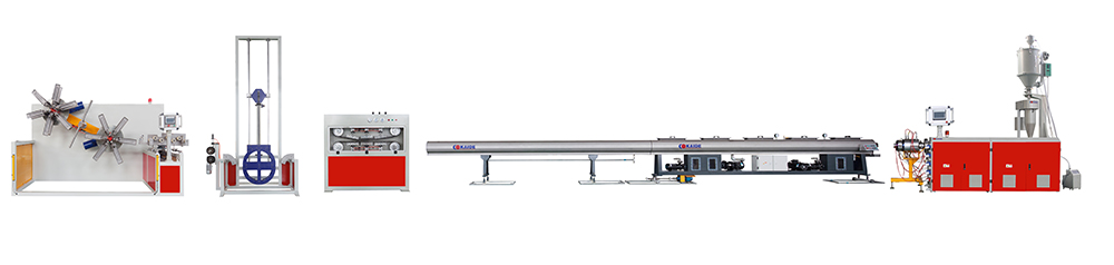 該生產線用來制造PP-R冷熱水管具有無毒、衛(wèi)生:耐熱,保溫性好,管道熔接工藝簡單方便,并可再回收利用等優(yōu)點。